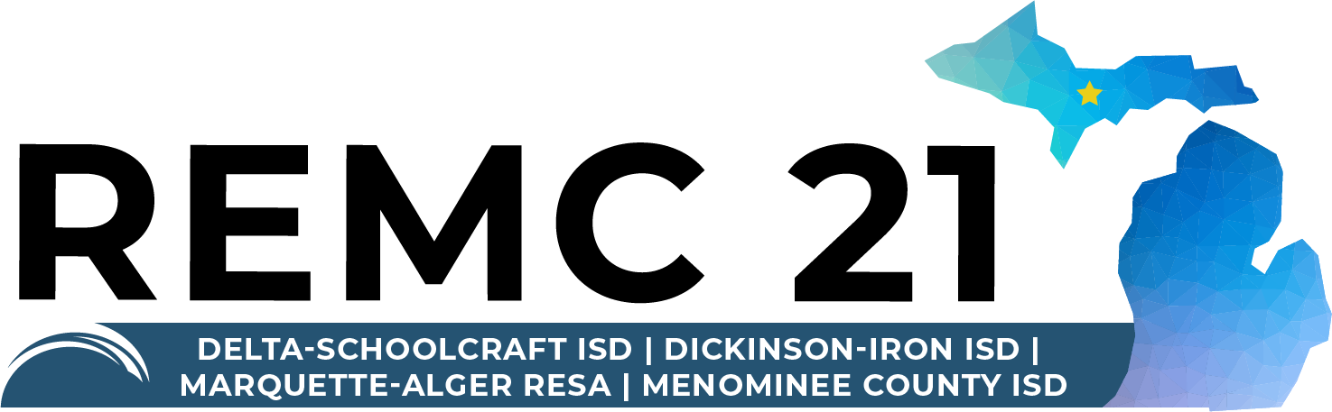 REMC 21 serves public and private schools in the Upper Peninsula's Alger, Delta, Dickinson, Iron, Marquette, Menominee, and Schoolcraft counties. It is the goal of REMC 21 to provide educators with equitable access to information, professional development opportunities, teaching materials, and resources through collaborative partnerships and consortium activities.